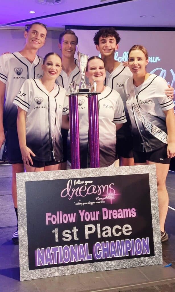 Pulsate Dance Force is proud to announce the remarkable success of its four troupes at recent events in Echuca and Melbourne in 2022. These troupes qualified to compete at Follow Your Dreams National Championships in Adelaide, where they faced and triumphed over some of Australia’s leading dance schools. Attending the National Championships was a once-in-a-lifetime opportunity for the young athletes and a moment they will cherish forever. The Intermediate Squad came away with 4 National Titles & 1 Runner up Title . Elevate Academy took home 5 National Titles and the prestigious OVERALL SENIOR TROUPE CHAMPIONS & $1000 cash prize , which will be put back into their future training. The amount of hard work and determination our students showed over their training period and at Nationals is something we are all extremely proud of . It does go to show with the right type of training and nurturing our regional students can really stand up at a National level & create Wangaratta’s own National Champions !